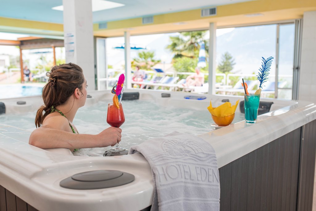 Nella parte interna della piscina, troverete una vasca Idromassaggio SPA Rilassante e Tonificante realizzata con materiali di ottima qualità certificati e garantiti. Quindi presso il nostro hotel La vasca è completa di 61 idro-getti ad acqua e ad aria massaggianti, massaggio collo-schiena, massaggio piedi, riscaldata, luci a led multicolore per la Cromoterapia, Aromaterapia e poggiatesta. Nella vasca potranno rilassarsi contemporaneamente fino a 5 persone.