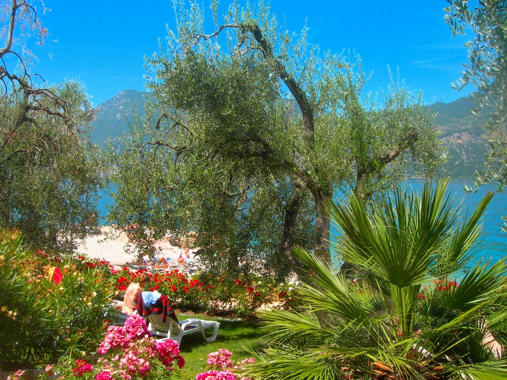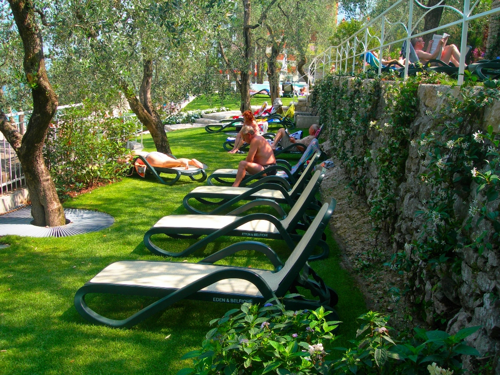 L'Hotel Eden è tra i pochi alberghi sul Lago di Garda che possano offrire ai propri clienti una location privata direttamente sulle sponde del lago. Si tratta di una spiaggia privata particolarmente curata e molto confortevole. Il litorale è composto da piccoli sassi bianchi che sono tipici del nostro lago, mentre alla riva troviamo degli scogli. Sulla nostra spiaggia troverete sedie a sdraio, lettini e ombrelloni, per godervi un relax totale, vicino la nostra spiaggia troverete anche un giardino, anchesso dotato di sedie sdraio, lettini e ombrelloni. In questo angolo di paradiso potrete trascorrere lunghi pomeriggi tra tuffi e bagni di sole, gustandovi le bellezze del panorama circostante. Da non sottovalutare che nel nostro giardino sul lago, potrete anche rilassarvi all’ombra del piccolo boschetto di ulivi caratteristici delle nostre zone per lasciarsi coccolare dal sole nelle ore più calde, nonché potrete utilizzare la nostra base come punto di riferimento per lo svolgere delle attività sportive sul lago. Ricordiamo che adiacente alla nostra spiaggia, troverete il Lounge Bar, del Belfiore park Hotel, dove grazie ad un’atmosfera rilassante e vacanziera, questo bar sarà l'ideale per la ristorazione veloce e la vostra voglia di dissetarvi tipico delle giornate estive. Sempre vicino alla nostra spiaggia privata troverete una seconda Piscina del Belfiore Park Hotel, la quale potra essere utilizzata dietro pagamento, inoltre al Belfiore park hotel, potrete affittare canoe, pedalò, motoscafi, boe e moltro altro.